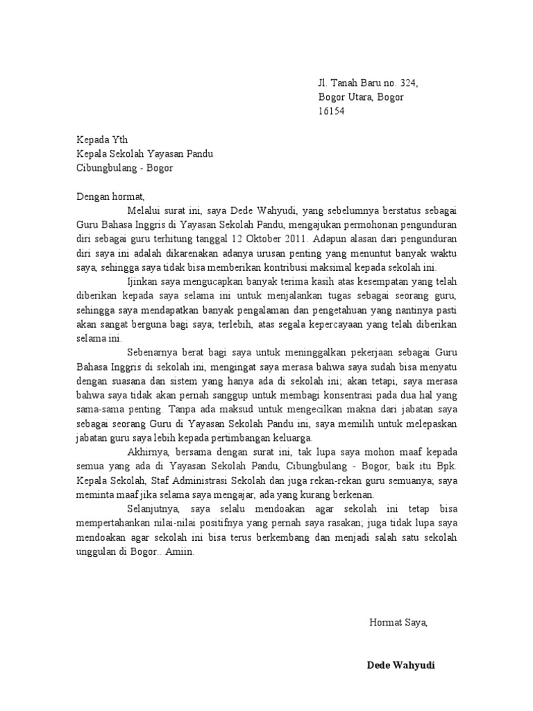 Contoh Surat Pengunduran Diri Dari Sekolah Yayasan : Contoh Surat Pengunduran Diri Dari Sekolah Yang Resmi Dan ... / Disamping itu, pasti akan kamu temukan beragam sensasi dikala bekerja, entah itu hambatan, suka, duka sampai kecewa.